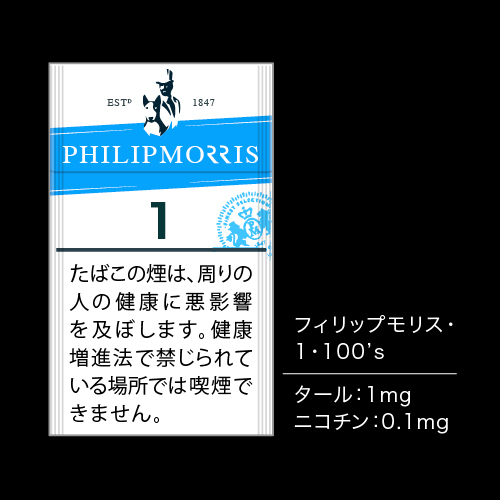 「フィリップモリス・1・100’s」は、味わいが軽く吸いやすいレギュラータバコです。